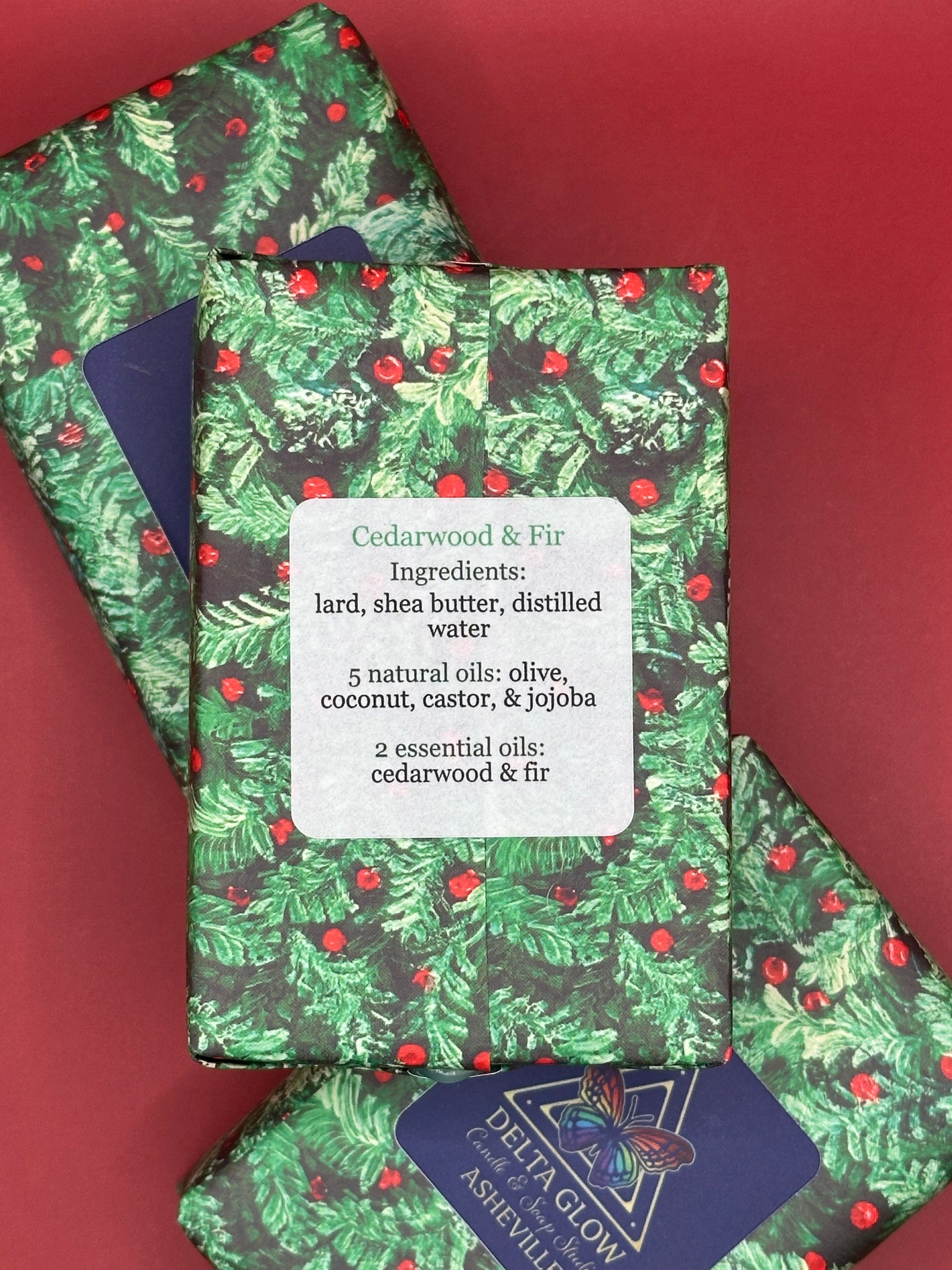 🌲Crafted with a thoughtfully balanced blend of nourishing oils and butters, this 5 oz bath bar combines lard, shea butter, olive oil, coconut oil, castor oil, and jojoba oil to create a luxuriously moisturizing cleanse. The addition of cedarwood and fir essential oils delivers a sophisticated, woodsy aroma that evokes the warmth and comfort of the season. This soap's rich formulation works to gently cleanse while supporting skin hydration, making it an ideal choice for those seeking both efficacy and sensory indulgence. Perfect for seasonal gifting or personal use, this bar embodies the essence of holiday tradition with its grounding forest notes and skin-conditioning properties.