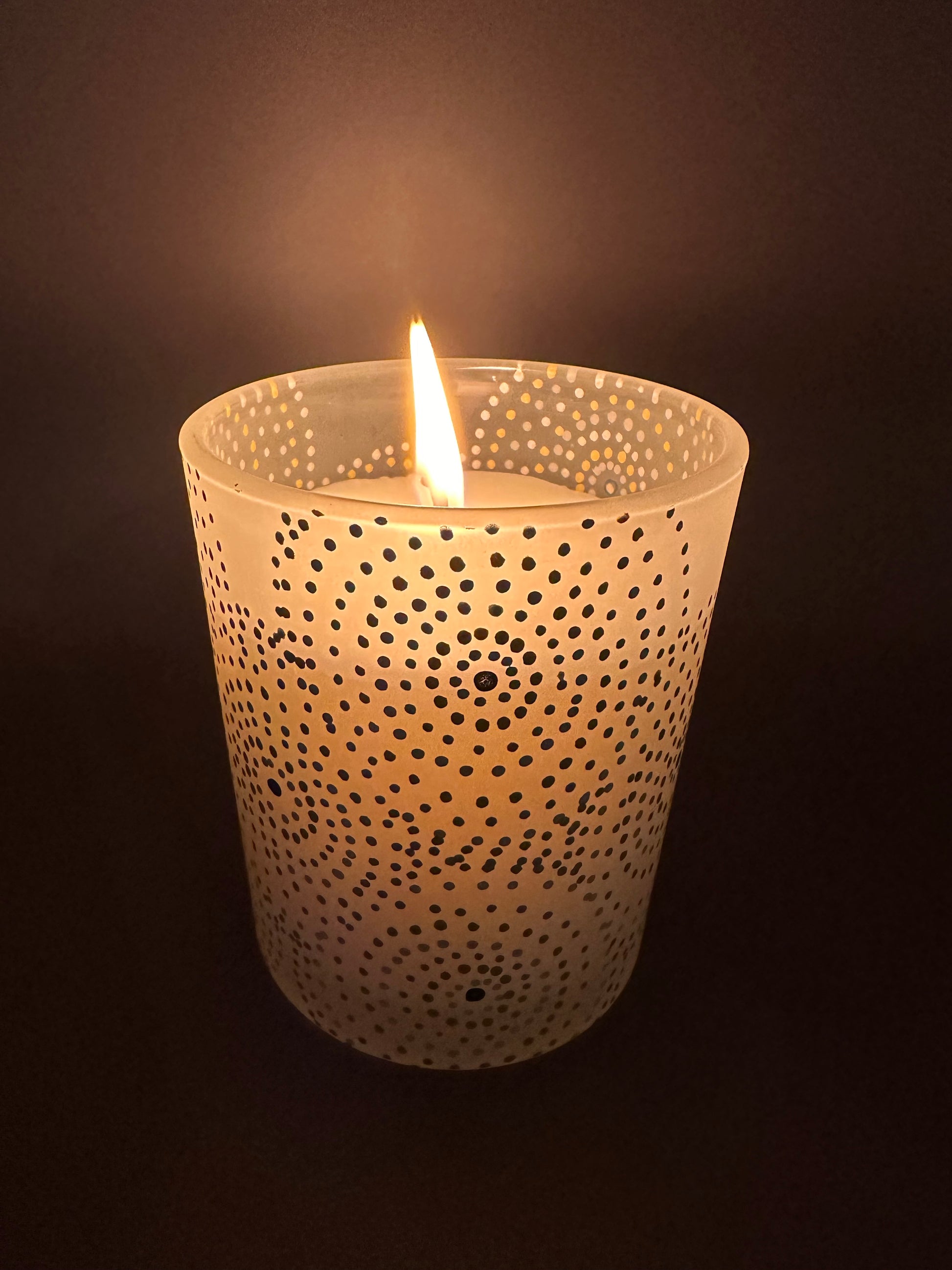 7 oz hand-painted frosted vessel with bamboo lid, cotton wick