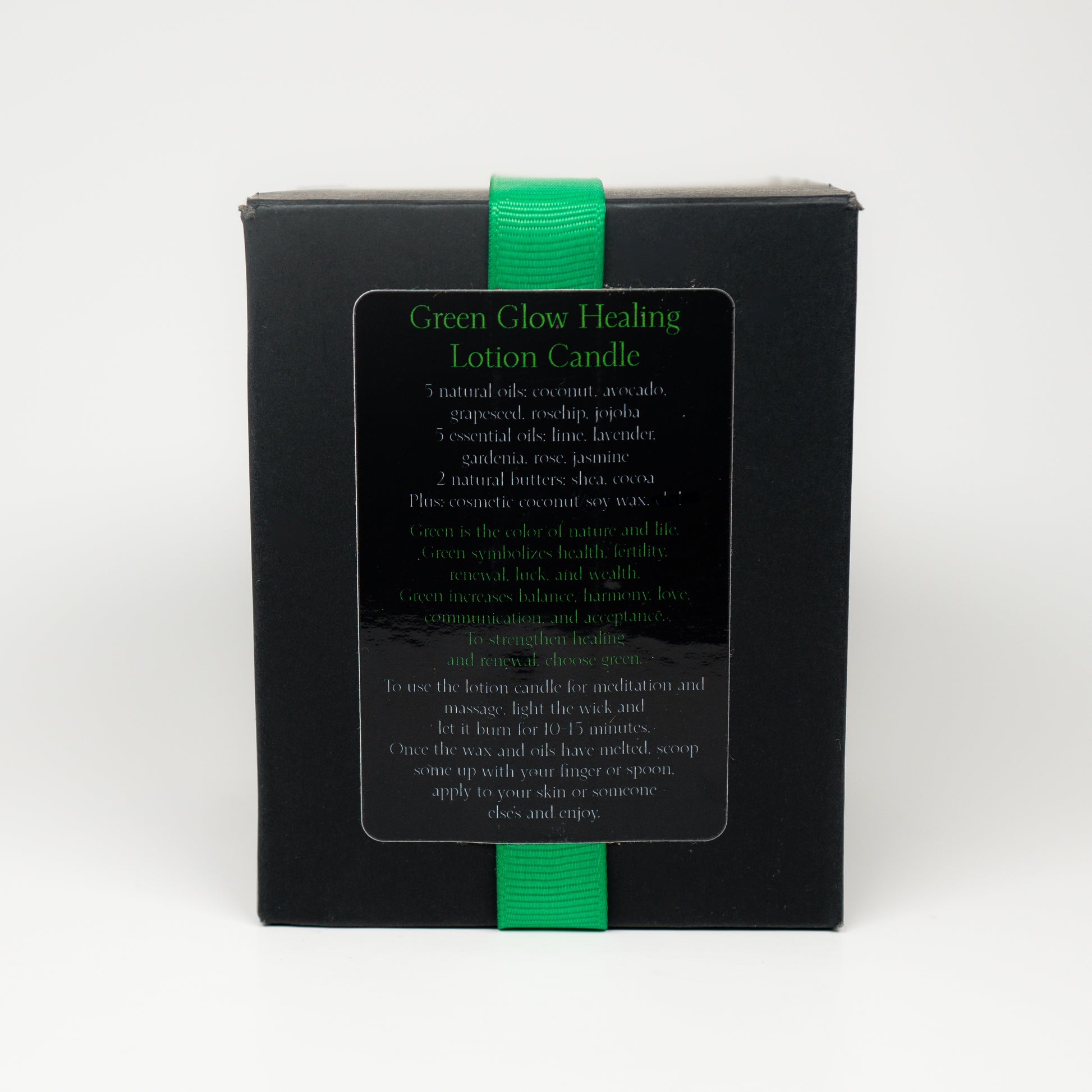 Green Glow Healing Lotion Candle - Handcrafted, Aromatherapy, Meditation, Massage, Coconut Soy Wax, 5 Natural Oils, 5 Essential Oils, Shea & Cocoa Butters, Eco-friendly