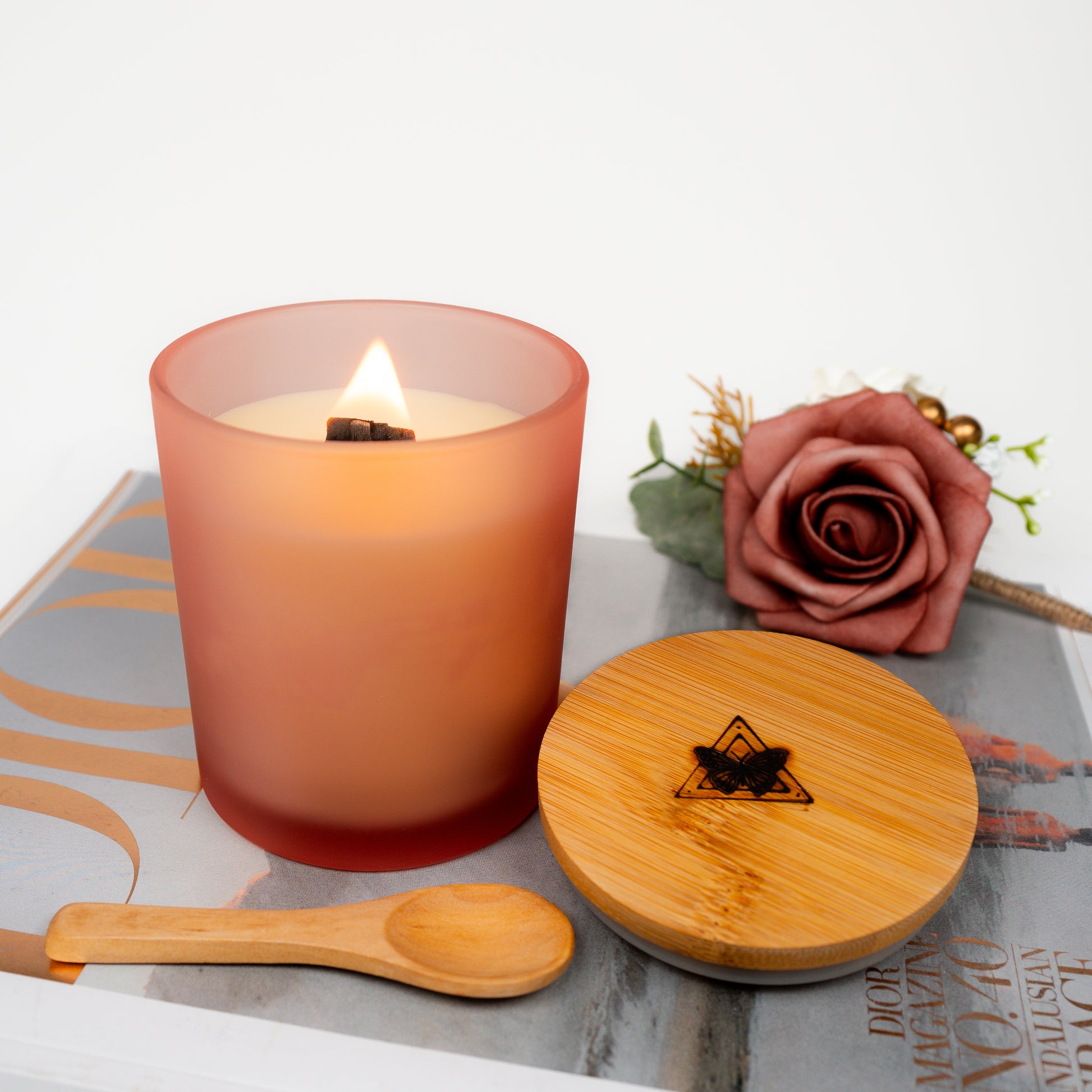 ✨ Wood wick candle in a 10 oz frosted glass vessel, crowned with a bamboo lid and complete with a spoon. Indulge in the warm embrace and experience the compassion, joy, and love for life that Pink Glow brings.