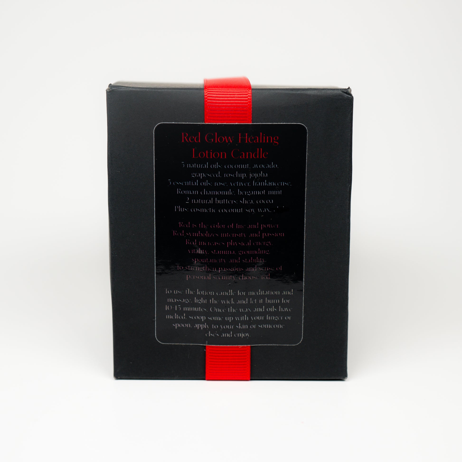 Red Glow Healing Lotion Candle - Handcrafted, Aromatherapy, Meditation, Massage, Coconut Soy Wax, 5 Natural Oils, 5 Essential Oils, Shea & Cocoa Butters, Eco-Friendly
