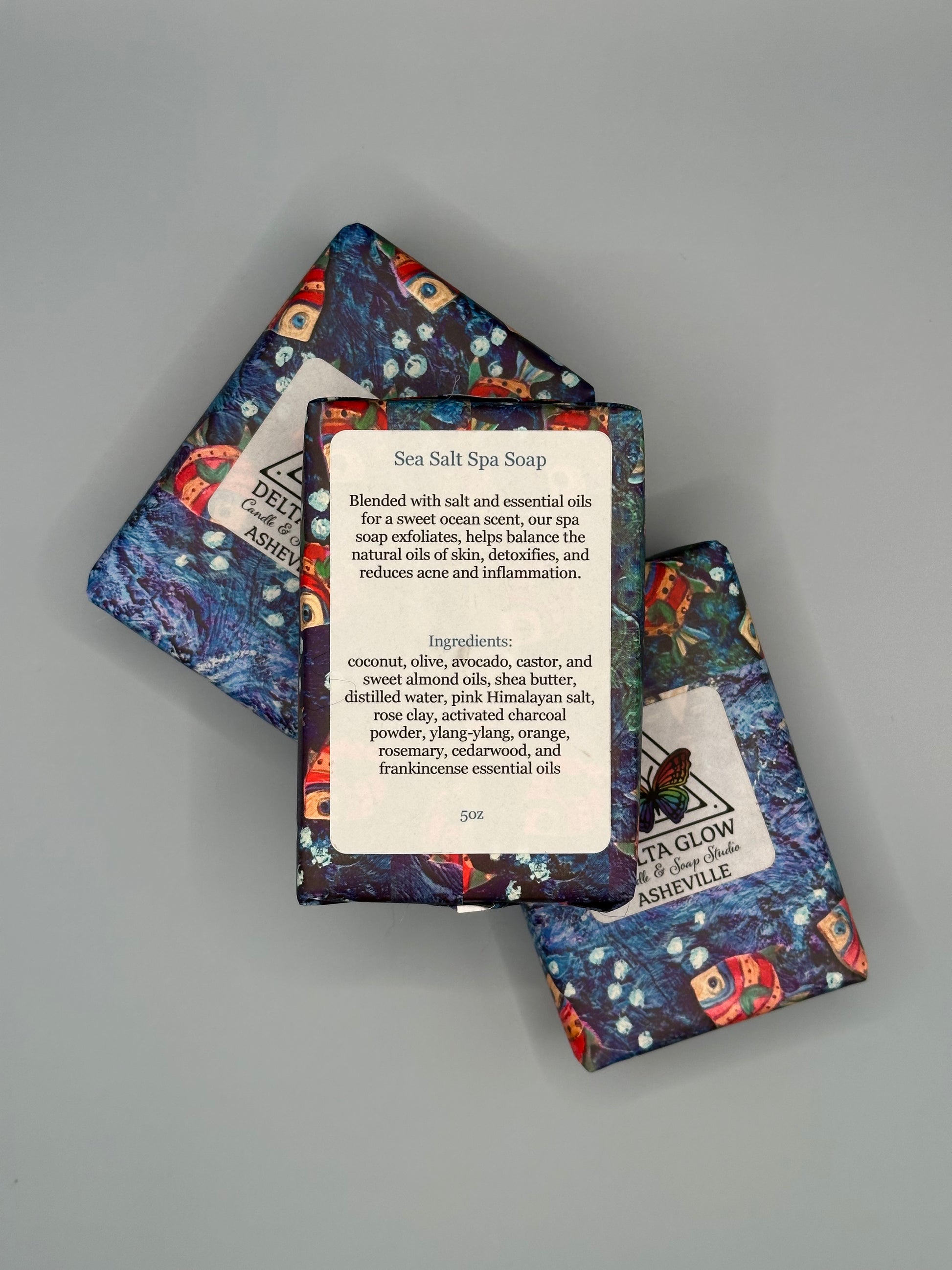🌊 Blended with salt and essential oils for a sweet ocean scent, our spa soap exfoliates, helps balance the natural oils of skin, detoxifies, and reduces acne and inflammation. This soap is also full of beneficial minerals, is gentle and moisturizing, and lathers wonderfully.