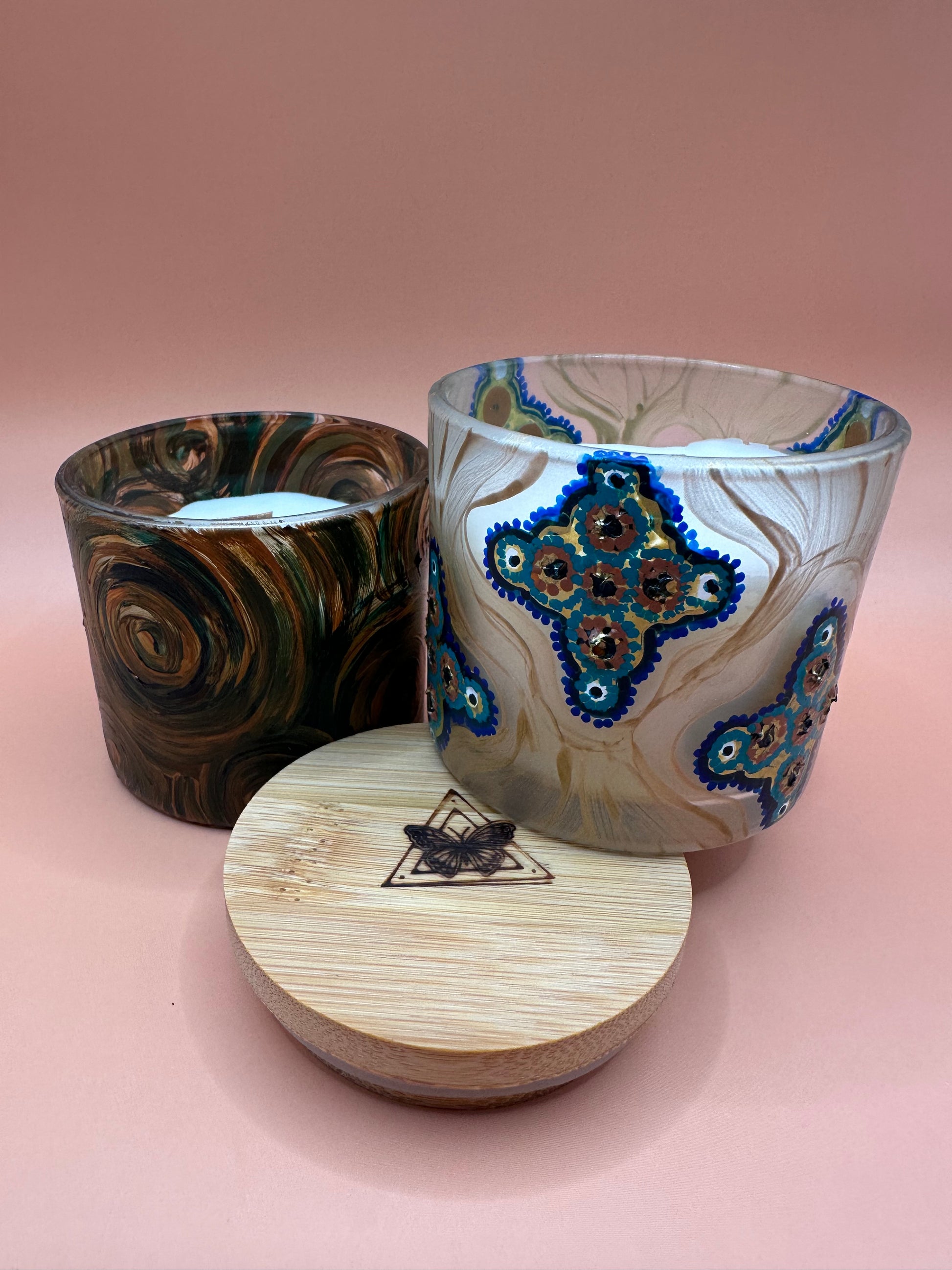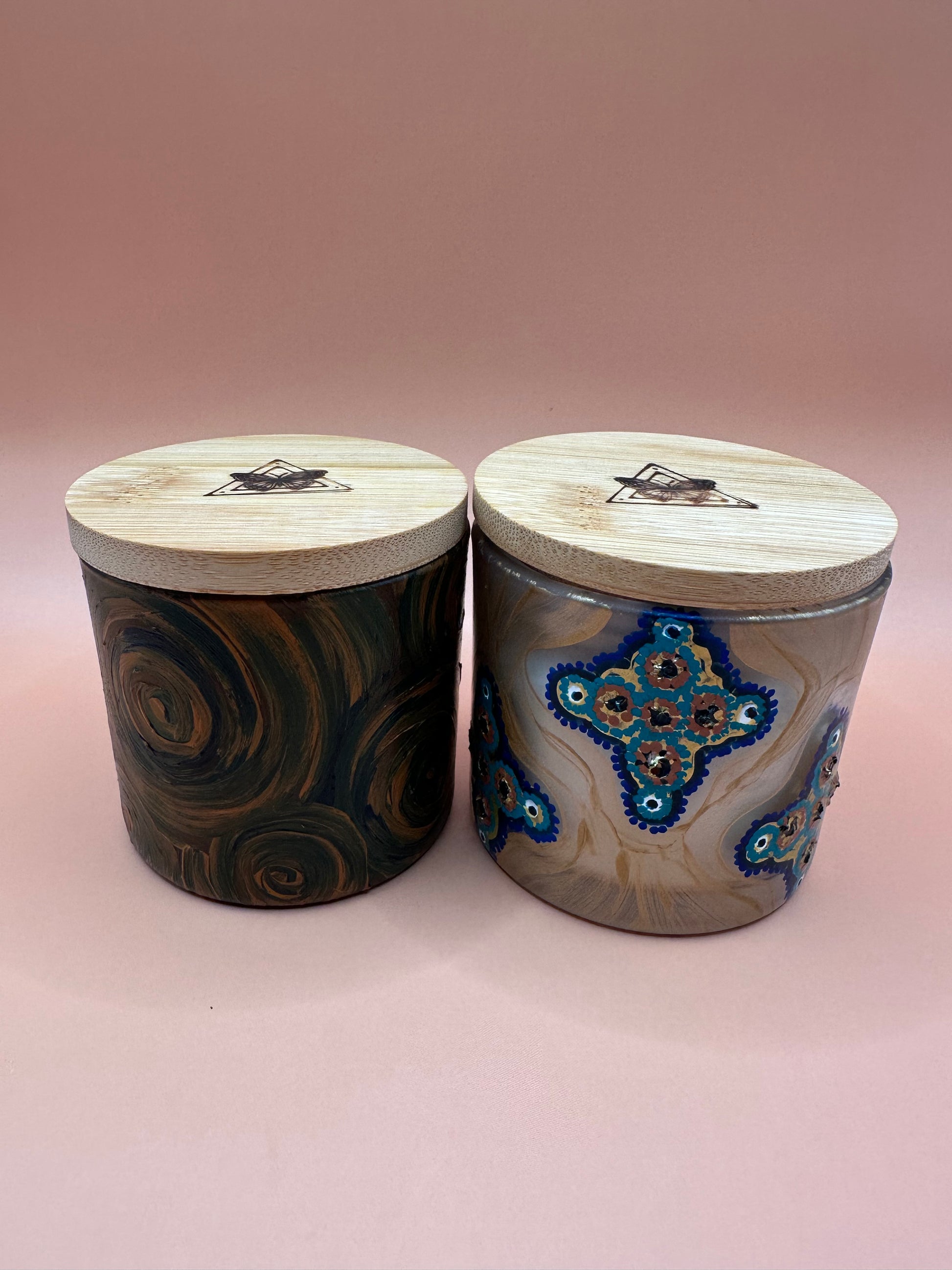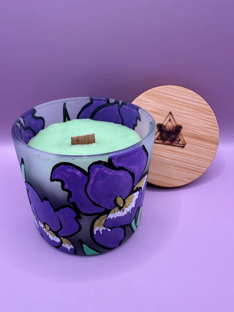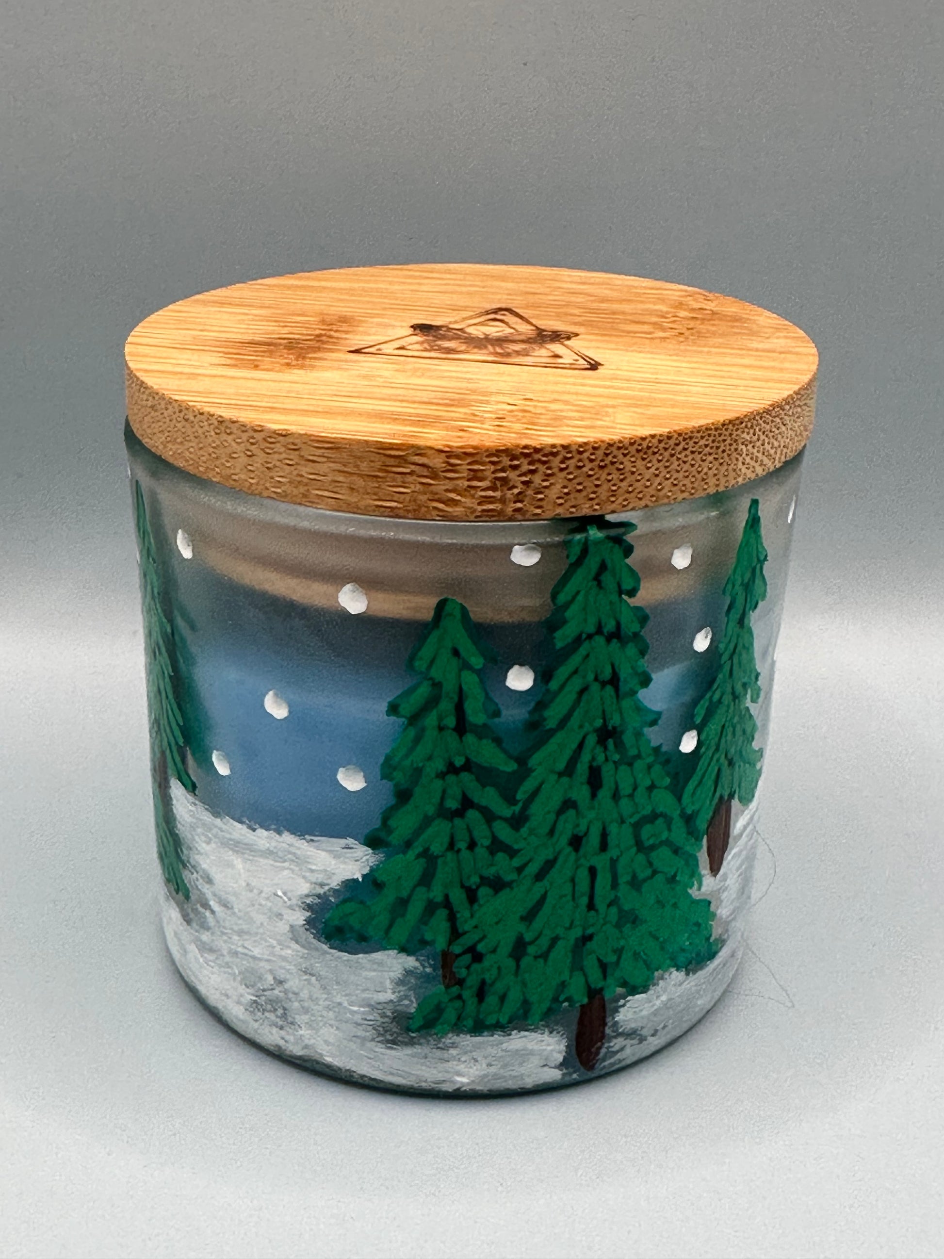Elevate your ambiance and add a touch of luxury to any space with our hand painted candles. With unique images and scents for each season, there's a perfect choice for every occasion. Made with premium ingredients like virgin coconut soy wax and non-toxic scents, our candles feature wooden wicks for a clean and even burn. And with a reusable frosted vessel and bamboo lid, you can enjoy the benefits of our candles while keeping impurities out.