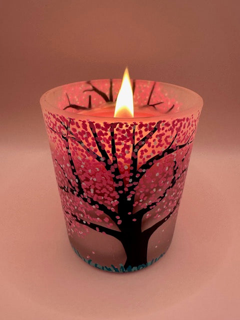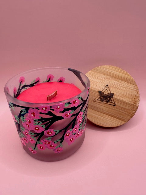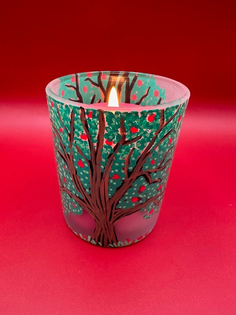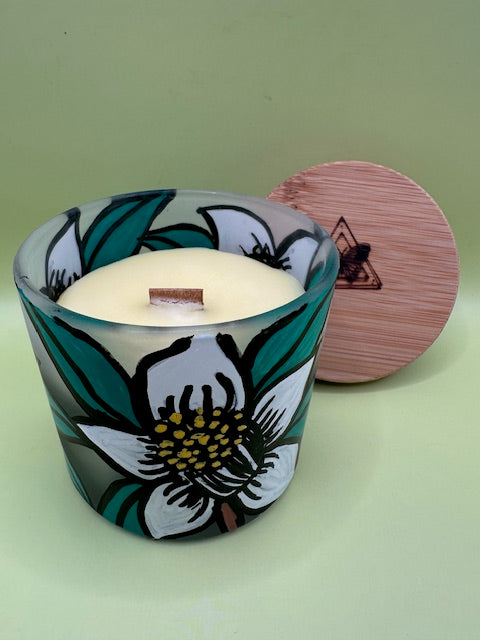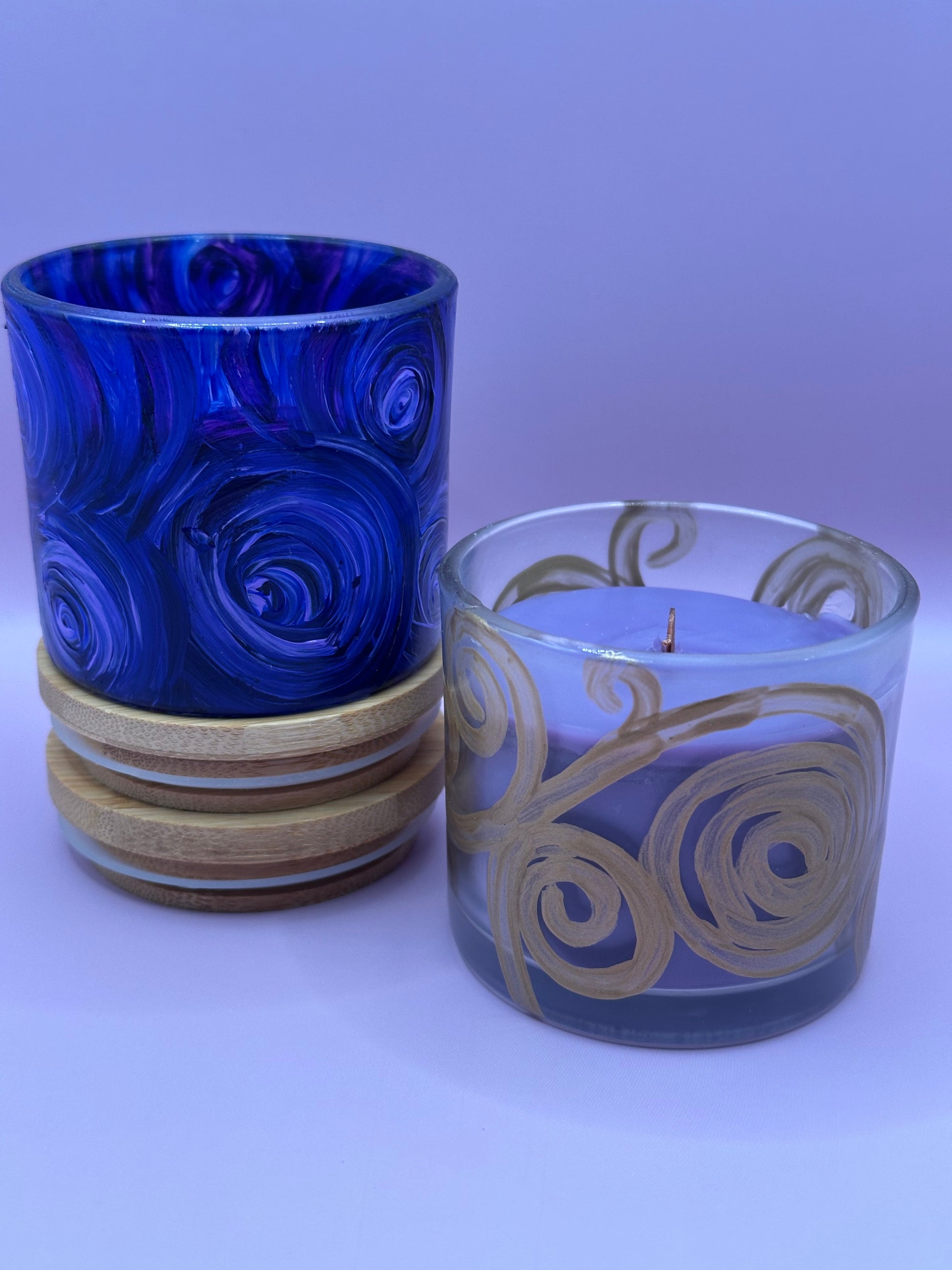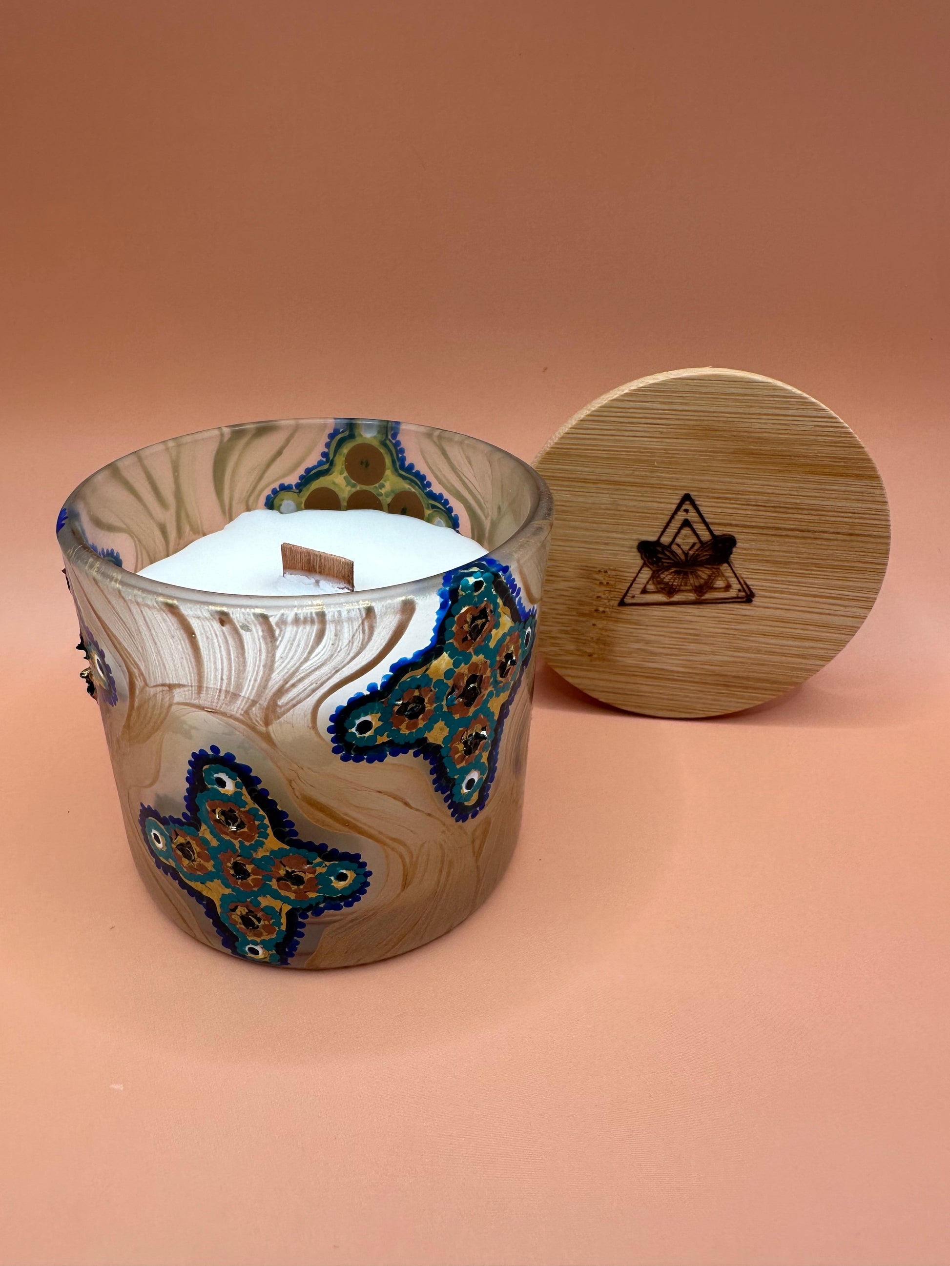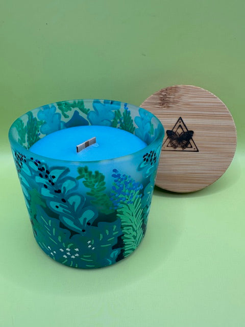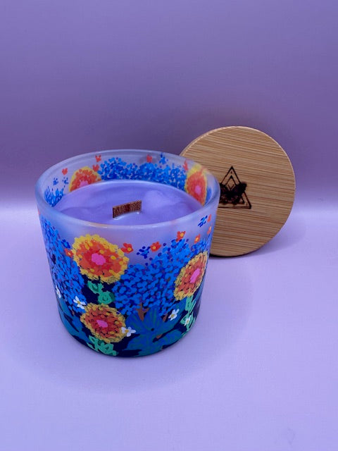 Elevate your ambiance and add a touch of luxury to any space with our hand painted candles. With unique images and scents for each season, there's a perfect choice for every occasion. Made with premium ingredients like virgin coconut soy wax and non-toxic scents, our candles feature wooden wicks for a clean and even burn. And with a reusable frosted vessel and bamboo lid, you can enjoy the benefits of our candles while keeping impurities out.