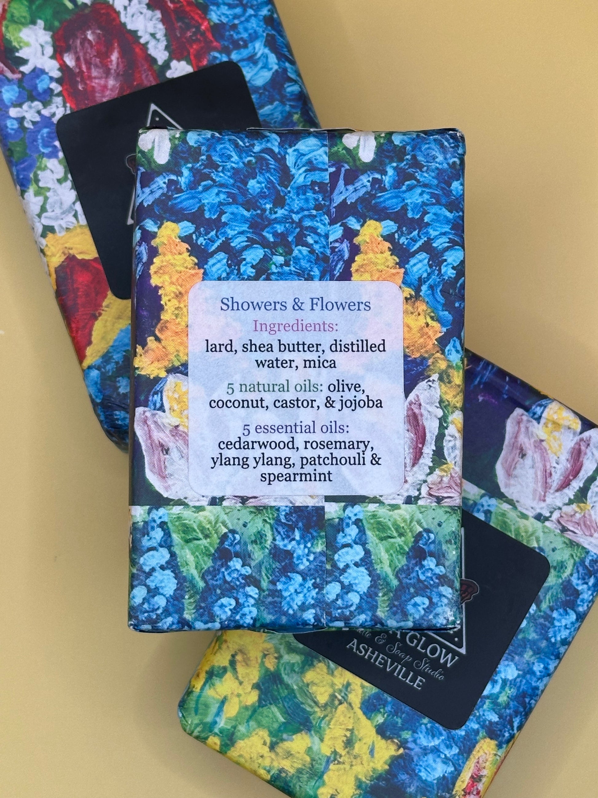 🌸☔️🌼 Showers & Flowers Bath Bar combines time-honored soap-making traditions with premium natural ingredients to deliver a luxurious cleansing experience. This 5 oz bar features a carefully curated blend of nourishing oils—shea butter, olive oil, coconut oil, castor oil, and jojoba oil—that work synergistically to cleanse without stripping your skin's natural moisture barrier. The addition of lard provides exceptional lather and skin conditioning properties that commercial soaps often lack. The aromatic profile draws from a sophisticated essential oil composition: cedarwood grounds the blend with woody warmth, while rosemary and spearmint provide crisp, invigorating top notes. Ylang ylang and patchouli add depth and complexity, creating a multi-dimensional scent experience that evolves throughout your shower. Naturally mined mica adds subtle visual appeal without compromising the bar's pure formulation. Distilled water ensures optimal hydration and stability, while the complete absence of synthetic fragrances or harsh detergents makes this bar suitable for discerning skincare enthusiasts. Each bar delivers a fresh, botanically-inspired cleanse that respects both your skin and the environment.